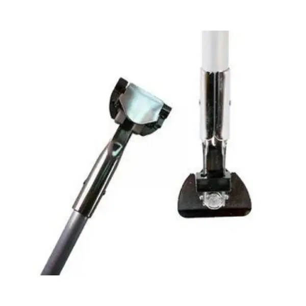 Mango diseñado para uso con mopas secas tipo “clip-on”, facilita enganchar y soltar el marco de mopa sin herramientas ni contacto manual. Ideal para limpiezas de polvo donde se requiere cambio rápido de cabezal y buena maniobrabilidad gracias a la articulación giratoria de 360°